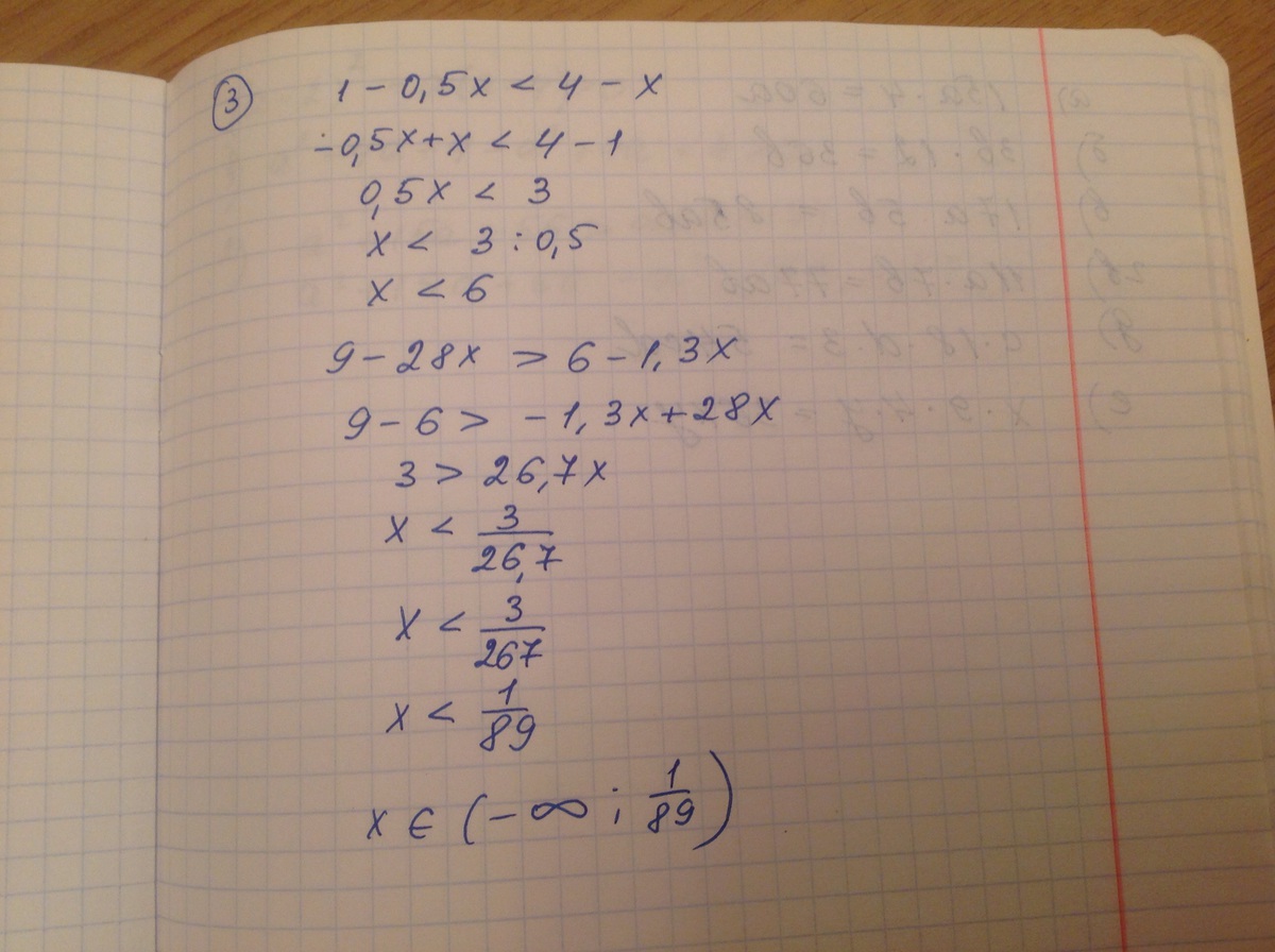 -28x+1,3x>6-9⇒-26,7x>-3⇒x<10/89