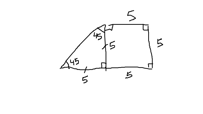 розв'язати задачу більша основа прямокутної трапеції 10 см,а менша основа і менша бічна сторона по 5 см.Знайти кути трапеції
