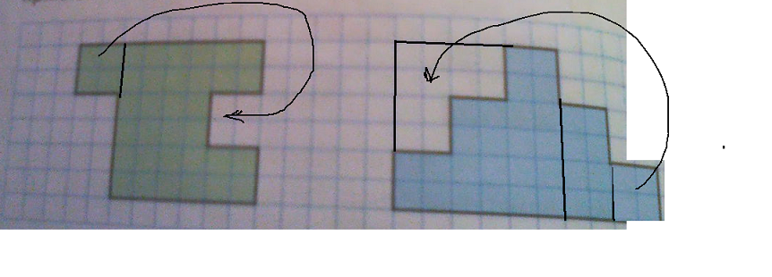Ответ не стоит многих баллов. Сделать из данных фигур квадрат с помощью одного разреза несложно. Отрезать у каждой кусок и приставить в нужное место.