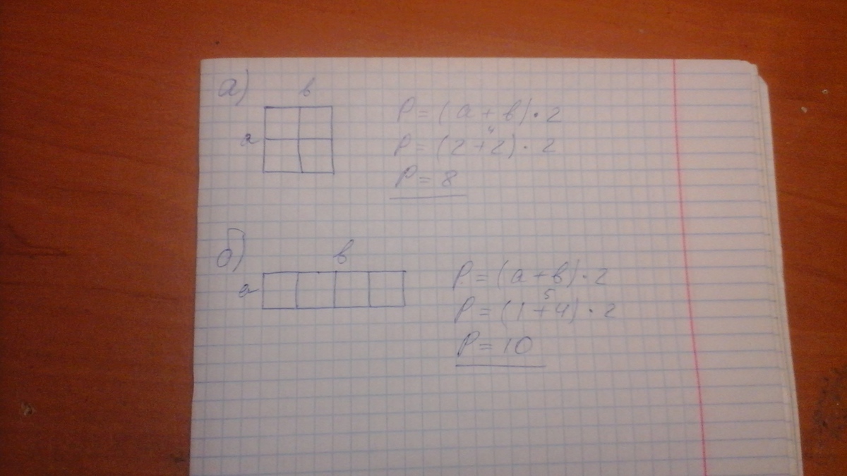 Начерти квадрат со стороной 1 см.Составь из 4 таких квадратов:а)квадрат; б)прямоугольник.Найди периметр каждой фигуры.