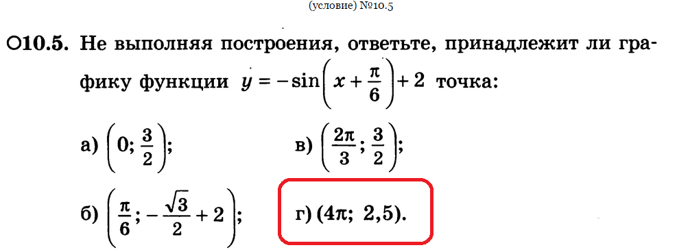 Просто подставляешь значение точек - 4π в х, а 2,5 - в у и, если получается верное равенство, то принадлежит, а если неверное - то не принадлежит.