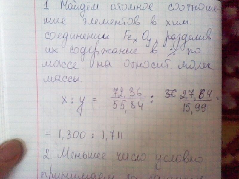 минерал содержит 72,36%железа и 27,64% кислорода.определите формулу минерала.(если можно,подробно)заранее спасибо
