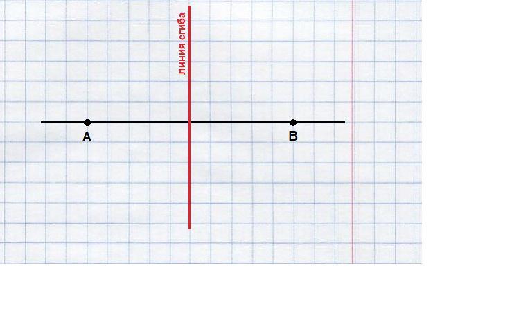 Отметьте на листе бумаги две точки А и В, а затем сложите лист так, чтобы А и В совпали. Как расположены друг относительно друга линия сгиба и прямая АВ?