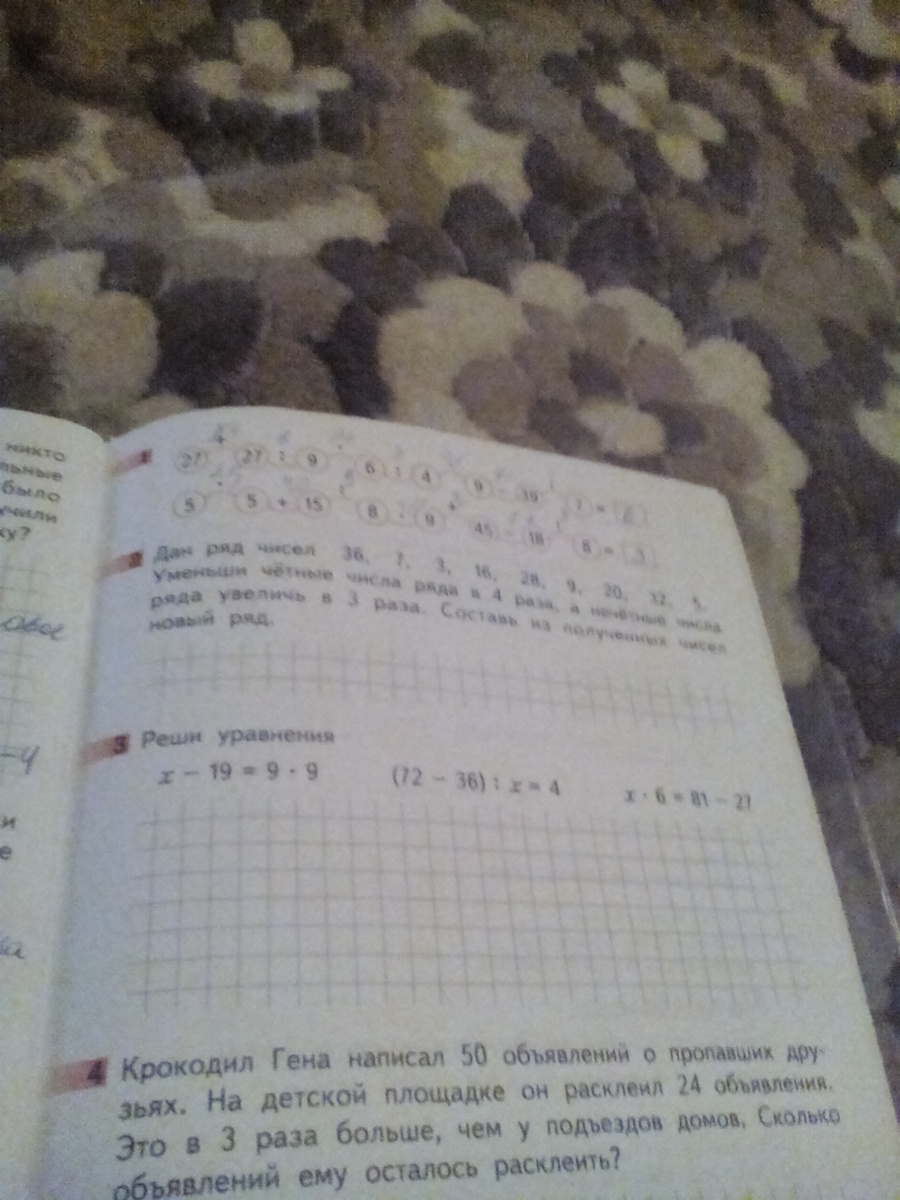 дан ряд чисел 36,7,3,16,28,9,20,32,5. Уменьши чётные числа ряда в 4 раза, а нечётные числа ряда увеличь в 3 раза. Составь из полученных чисел новый ряд. и уравнение.