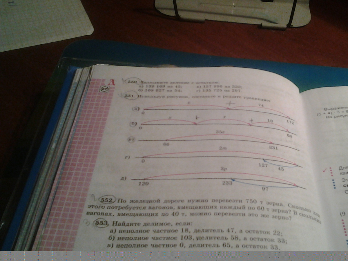 номер 551 используя рисунок , составте и решите уравнение. Мне нужен только В. там написано кто не видит сначала 86 35 умножить на z равно 331