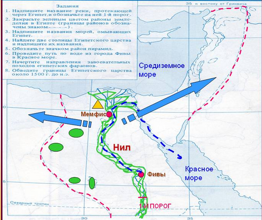 Река Нил расположена рядом с Средиземным и Красным морем.