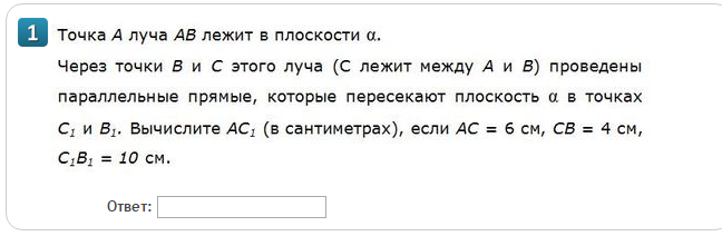 ТреугольникиАВВ1 и АСС1 подобны, пусть АВ1=х, АВ=2, АС1=х+10, имеем 2/х=6/(х+10), х=5, АС1=15
