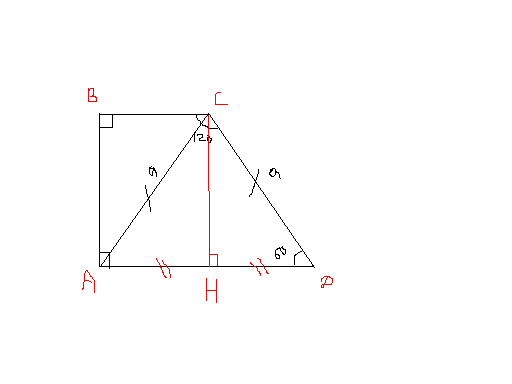 Угол Д равен 360-120-90-90=60 гр. Из вершины С опустим высоту СН на сторону АД, получившийся треугольник АСД- равнобедренный. Рассмотрим прямоугольные треугольники АСН и НСД, угол НСД равен 180-90-60=30. В прямоугольном треугольнике катет лежащий против угла в 30 градусов равен половине гипотенузы, значит АН=НД=а/2. В прямоугольнике АВСН -противоположные стороны равны, значит основание трапеции