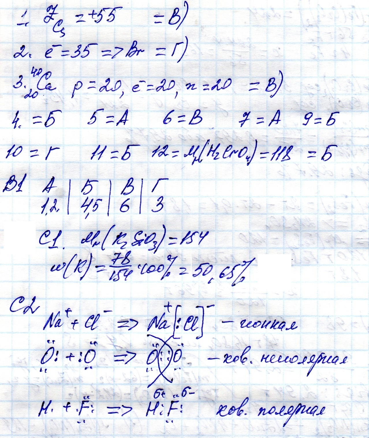 А8. Укажите пару химических элементов, между которыми может возникнуть ионная связь