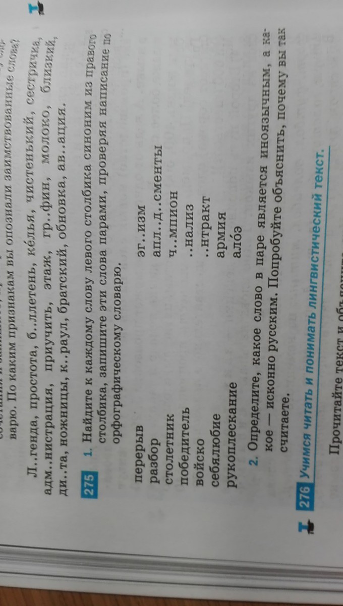 в 1 столбике даны исконно рус. слова, а во 2 - иноязычные.