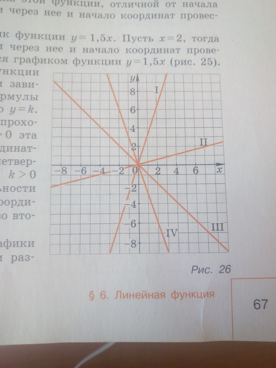 Для каждого графика прямой пропорциональности, изображённого на рисунке 26, напишите соответствующую