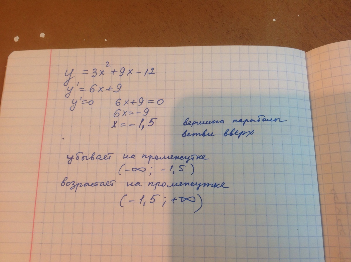 Найдите промежутки монотонности функции y= 3x*x + 9x - 12