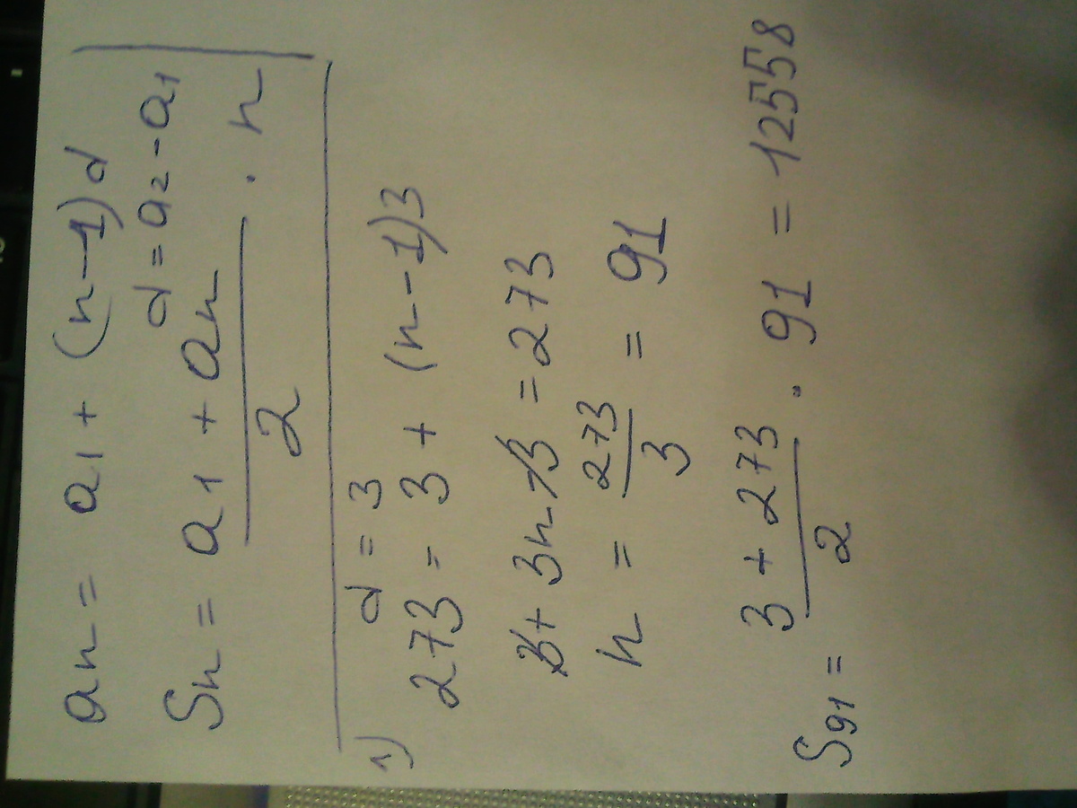 найдите сумму, если её слагаемые - последовательные члены арифметической прогрессии: 1) 3 +6 +9+ .... + 273. 2) 90 +80 +70 +....+ (-60).
