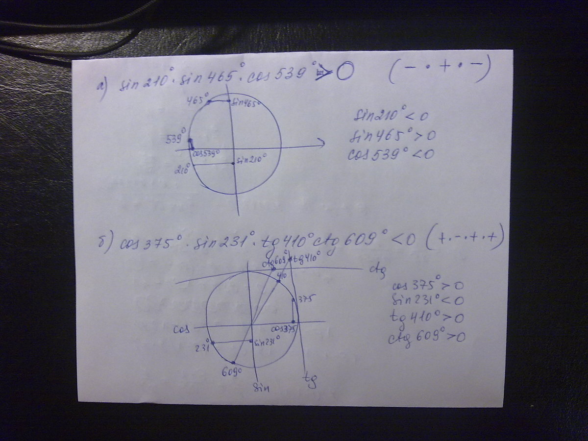 a)sin210°sin465°cos539°; б)cos375°sin231°tg410°ctg609°