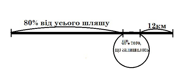 (км) - шлях після проїзду на велосипеді. Що в свою чергу складає 20% від загального. (100%-80%)