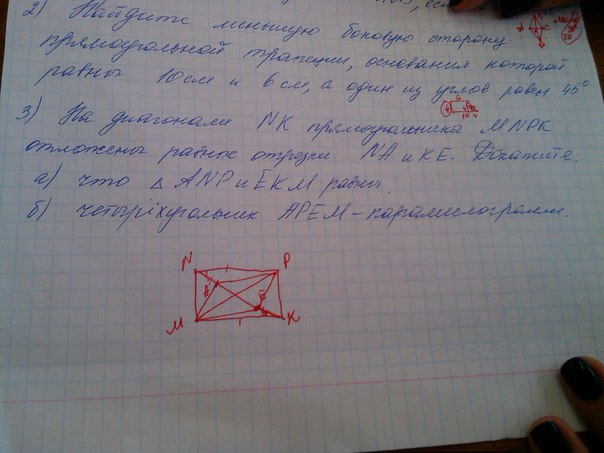на диагонали NK прямоугольника MNPK отложены равные отрезки NA и K E. докажите, что четырехугольники APEM - параллелограмм.