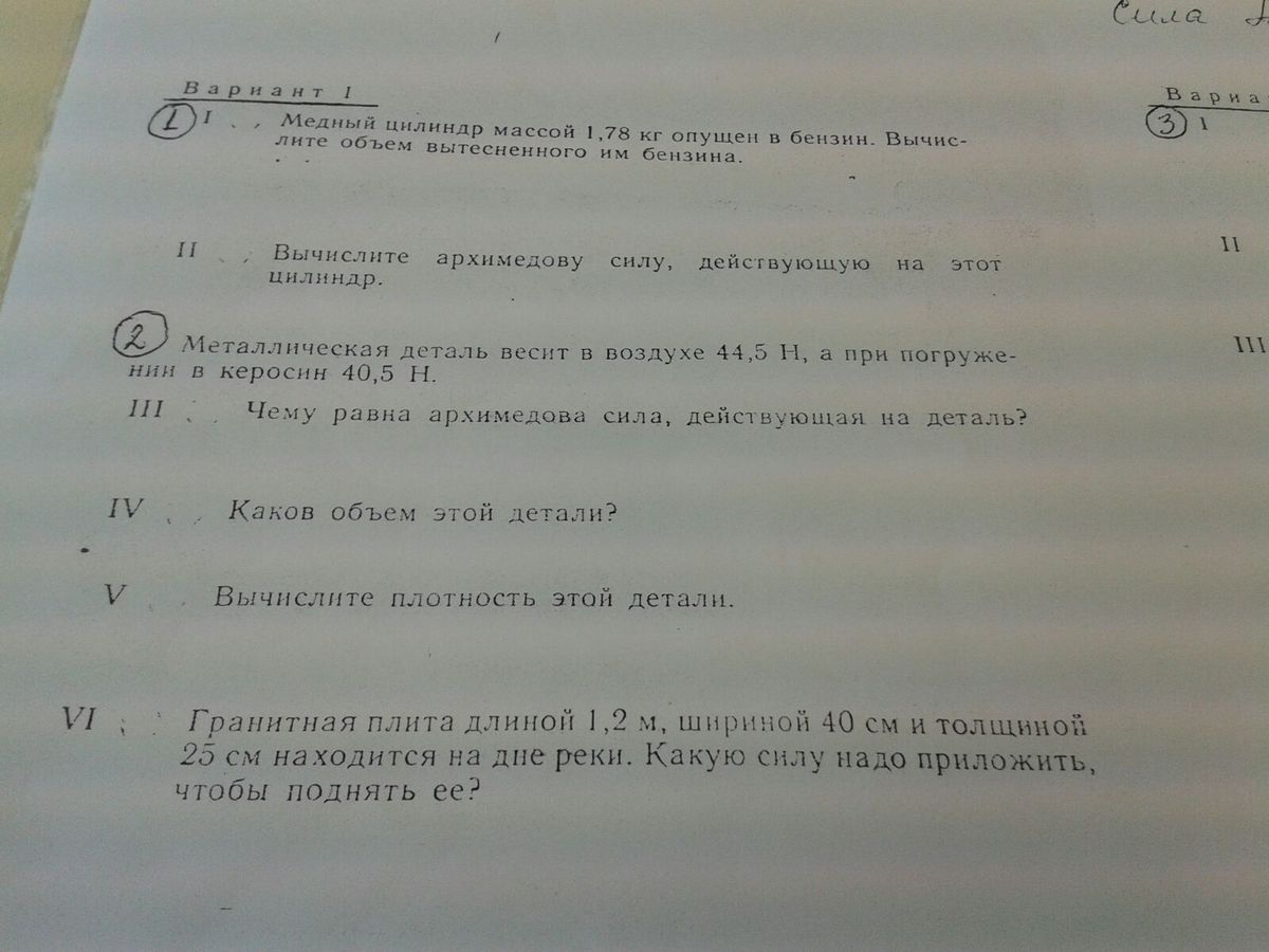 1) Сила Архимеда