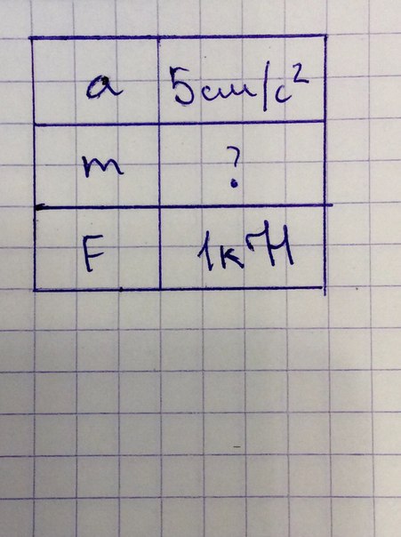 Заполните таблицу где a ускорение,которое приобретает тело массой m под действием силы F.