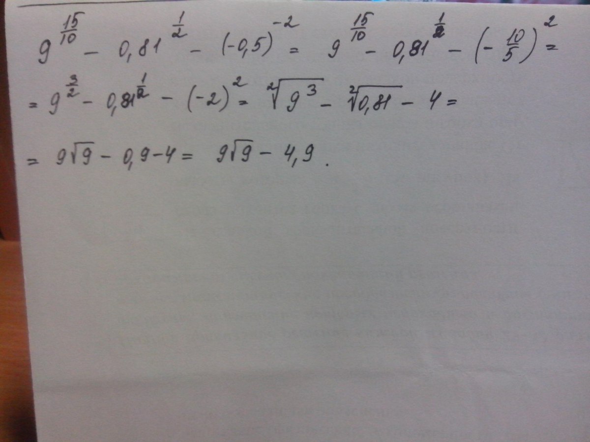 решение 9^1,5-0,81^0,5-(-0,5)^-2