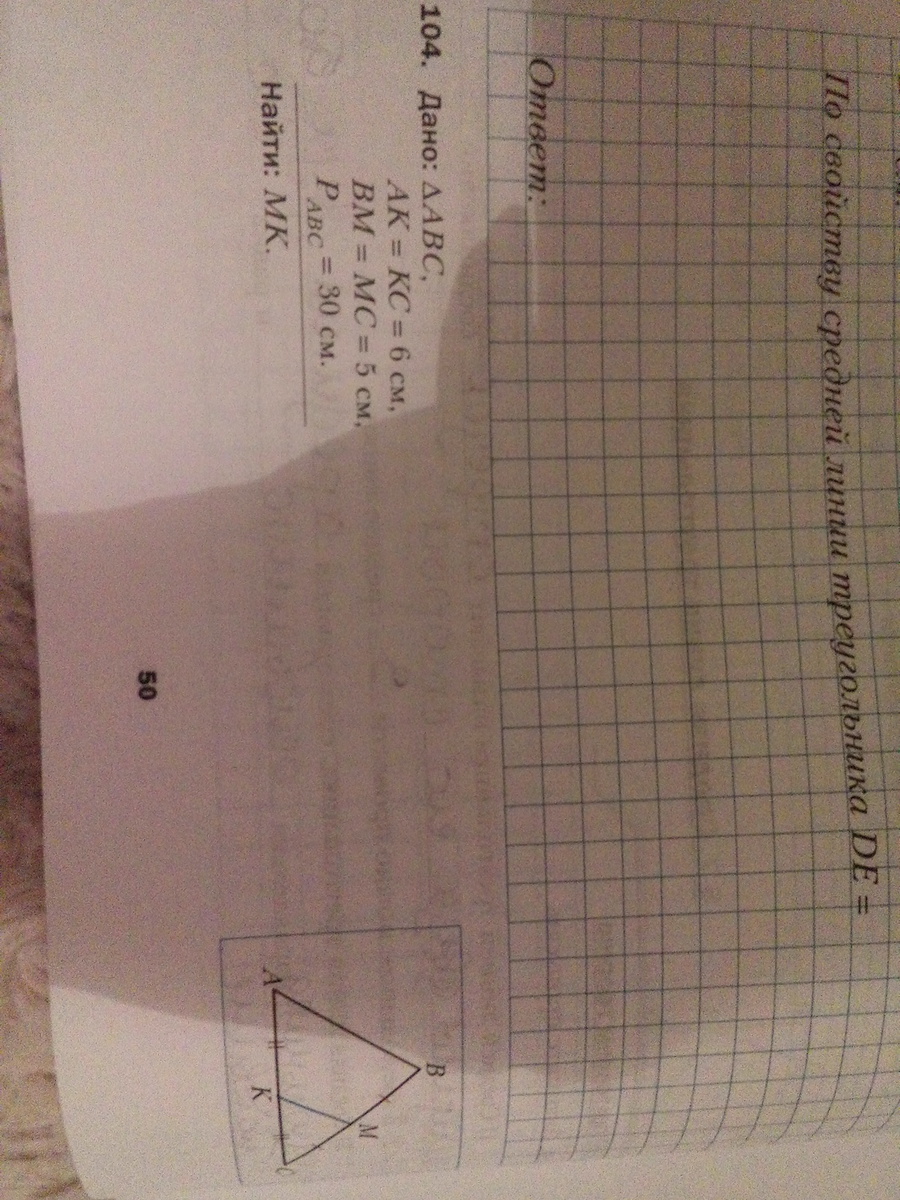 MK - средняя линия треугольника (т.к. делит стороны пополам). Средняя линия равна половине параллельного ей основания, т.е. половине AB.