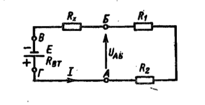 определить напряжение Uбв на выводах сопротивления Rx и сопротивление Rx, если E=50.4 В; Uаб=24 В и Rвт=2 Ом а ток в цепи I=1.2 А (ответ: 24 В; 20 ом)