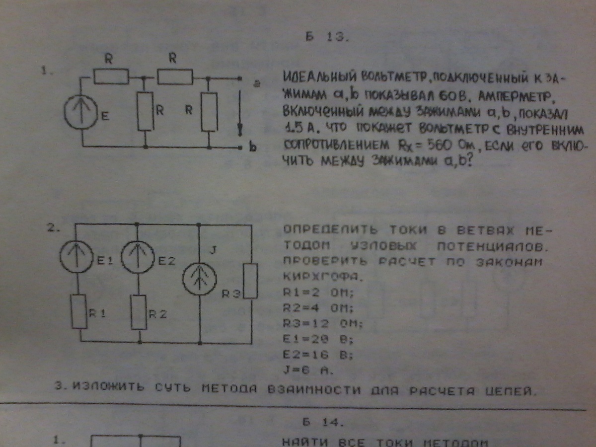 - общее сопротивление. I=E/Z=2.72 А - общий ток. U1=I*(Z-R) - напряжение в контуре не включающем первый резистор и источник.