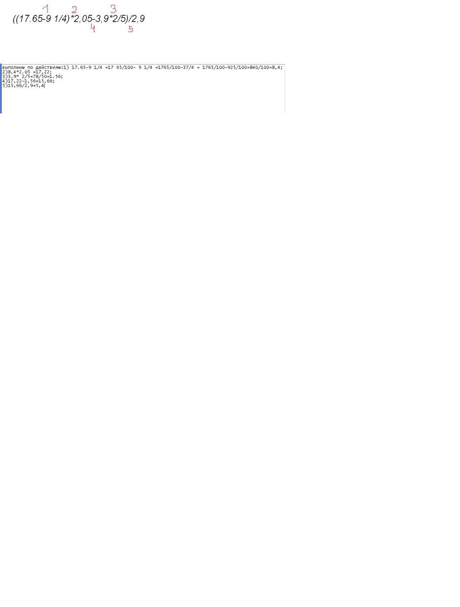 ((17,65 - 9 1/4) * 2,05 - 3,9 * 2/5) : 2,9 = 5,4