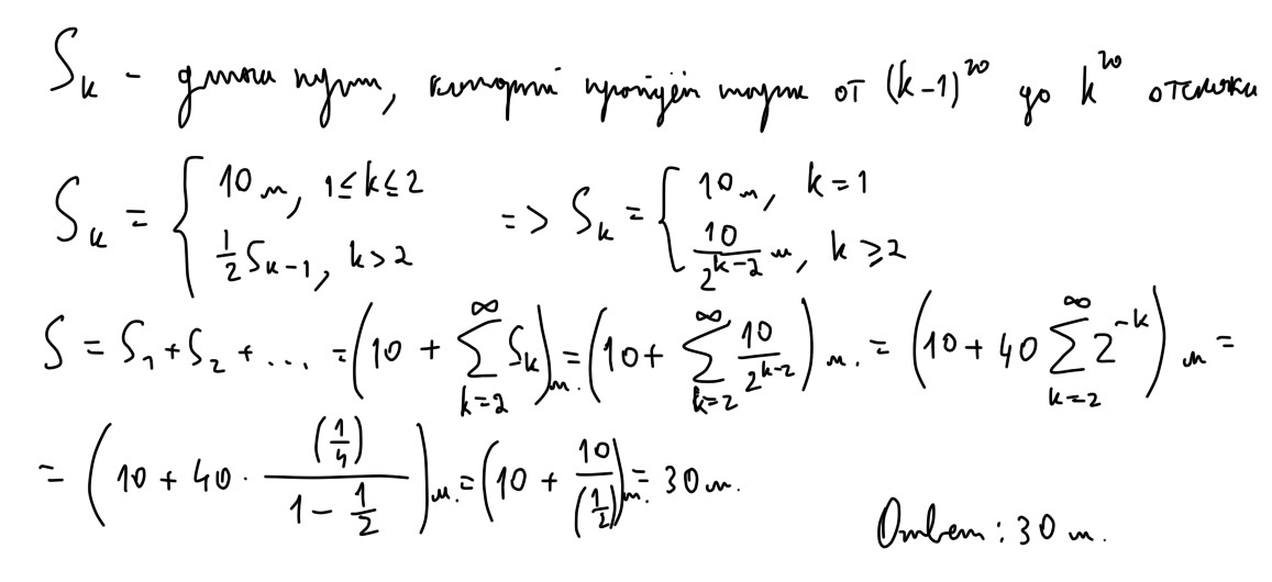 S=10:(1-1/2)=10:1/2=10*2=20(м)