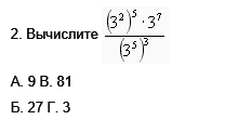 (3^2)^5 * 3^7 / (3^5)^3 = 3^10*3^7 / 3^15 = 3^17/3^15= 3^2 = 9