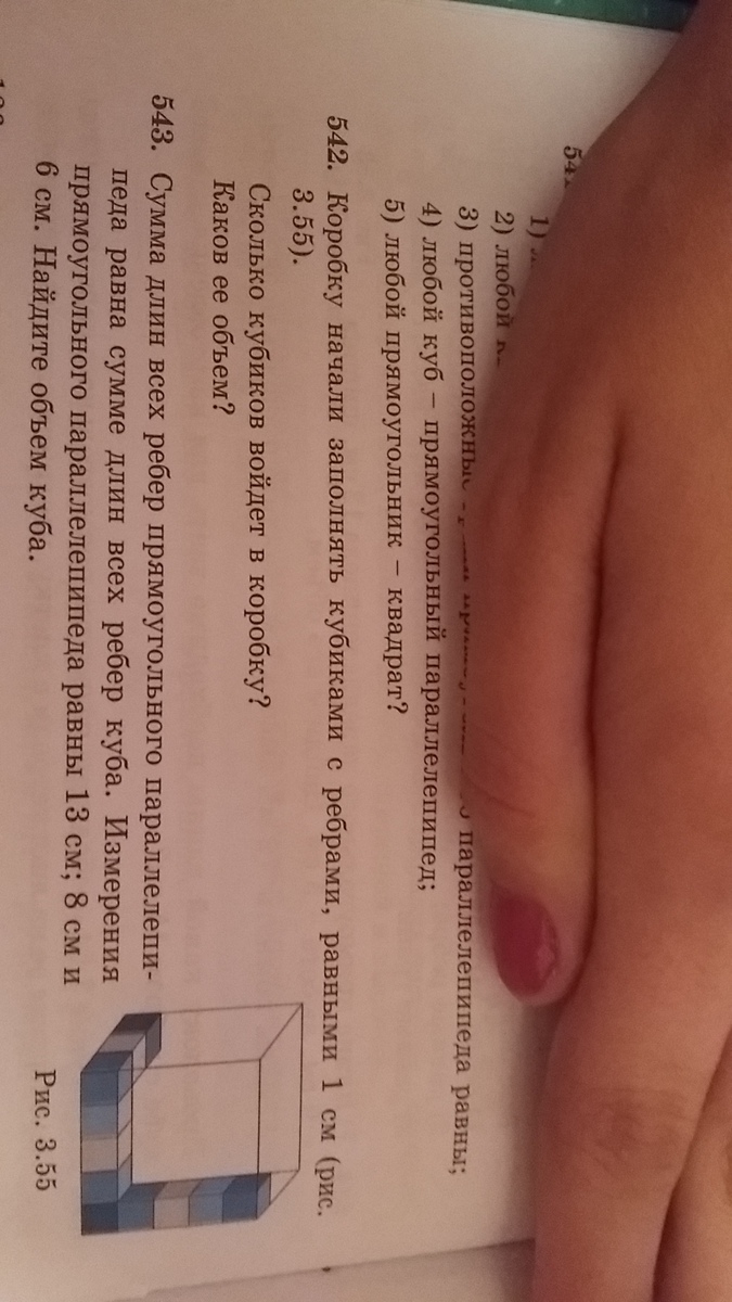 коробку начали заполнять кубиками с ребрами ,равными 1 см Сколько кубиков войдет в коробку?Каков его объем?