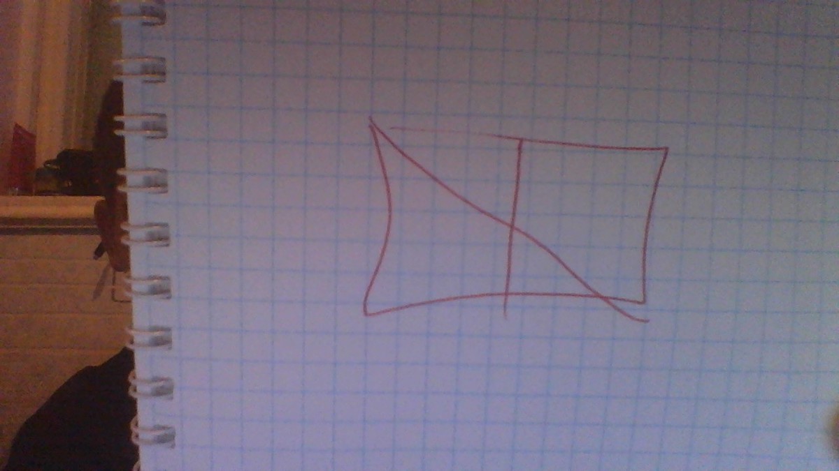 одну линию нужно провести по диагонали а другую по 2 центрам противоположных сторон