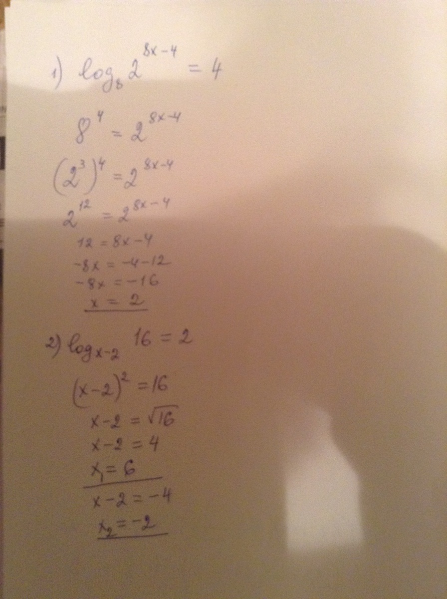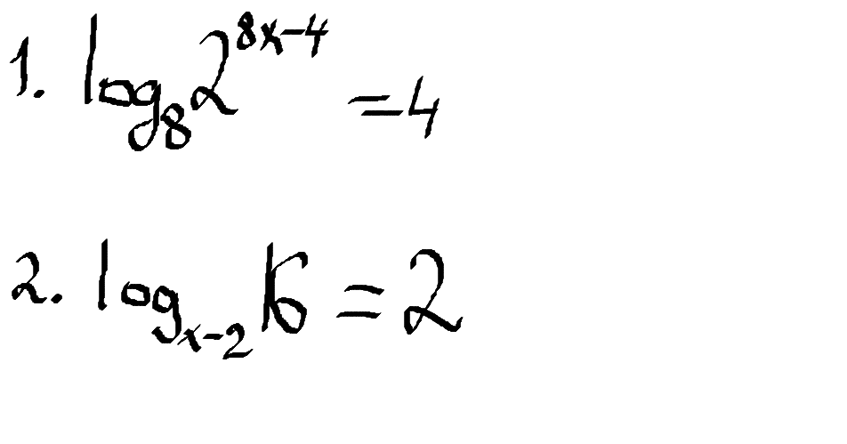 1. 2^(8x-4)=8^4 2. ОДЗ х>2, x не равняется 3