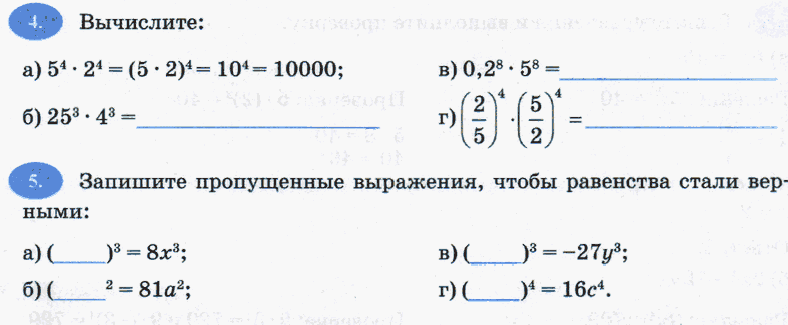 г) (2/5)⁴ * (5/2)⁴ = (2/5 * 5/2)⁴ =1⁴ = 1