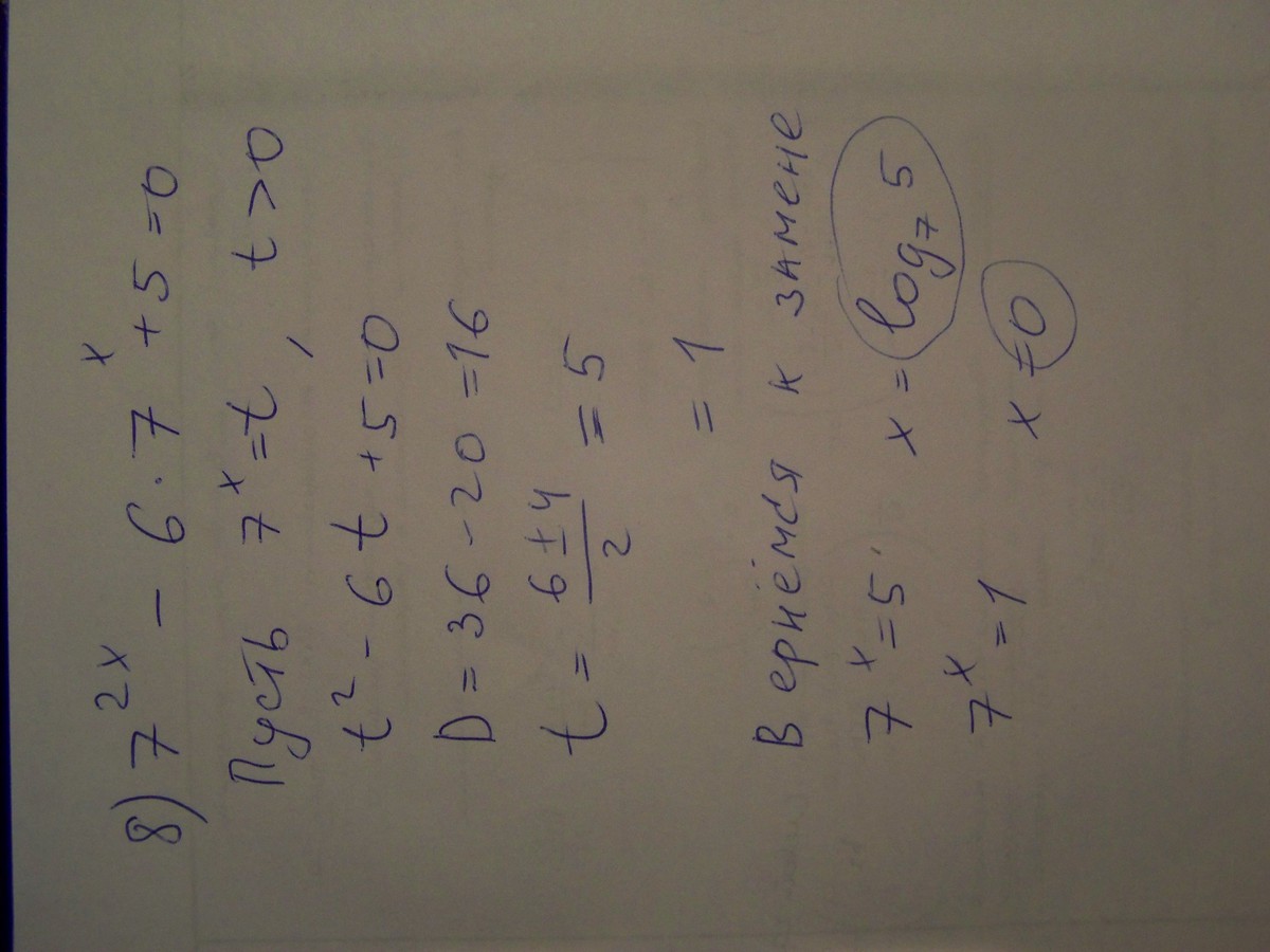 в уравнении под номером 8 я так понял условие 7^(2x)-6·7^(x)+5=0