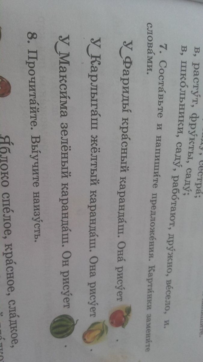 У Фариды красный карандаш. Она рисУет Яблоко.