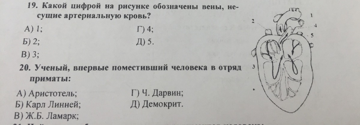 19)Какой цифрой ни рисунке обозначены вены несущие артериальную кровь