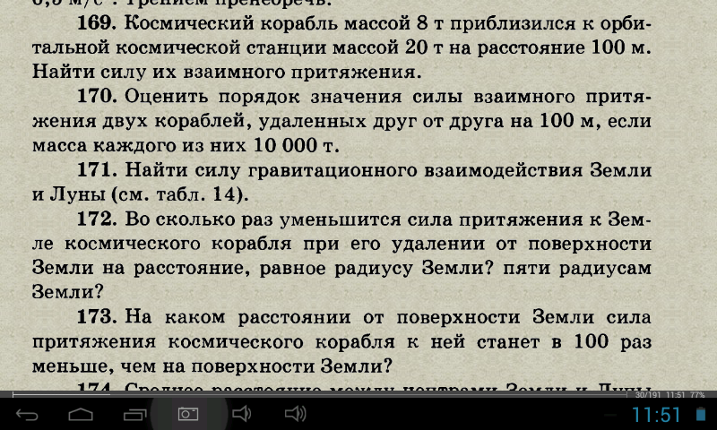 (для номера 173: По той же формуле 100 кратное уменьшение силы притяжения к Земле будет наблюдаться на расстоянии от поверхности Земли, равном 10 радиусам Земли.)