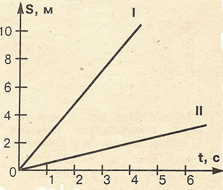на рисунке изображены графики путей двух равномерных движений I u II. По графикам определите скорость какого из этих тел больше.
