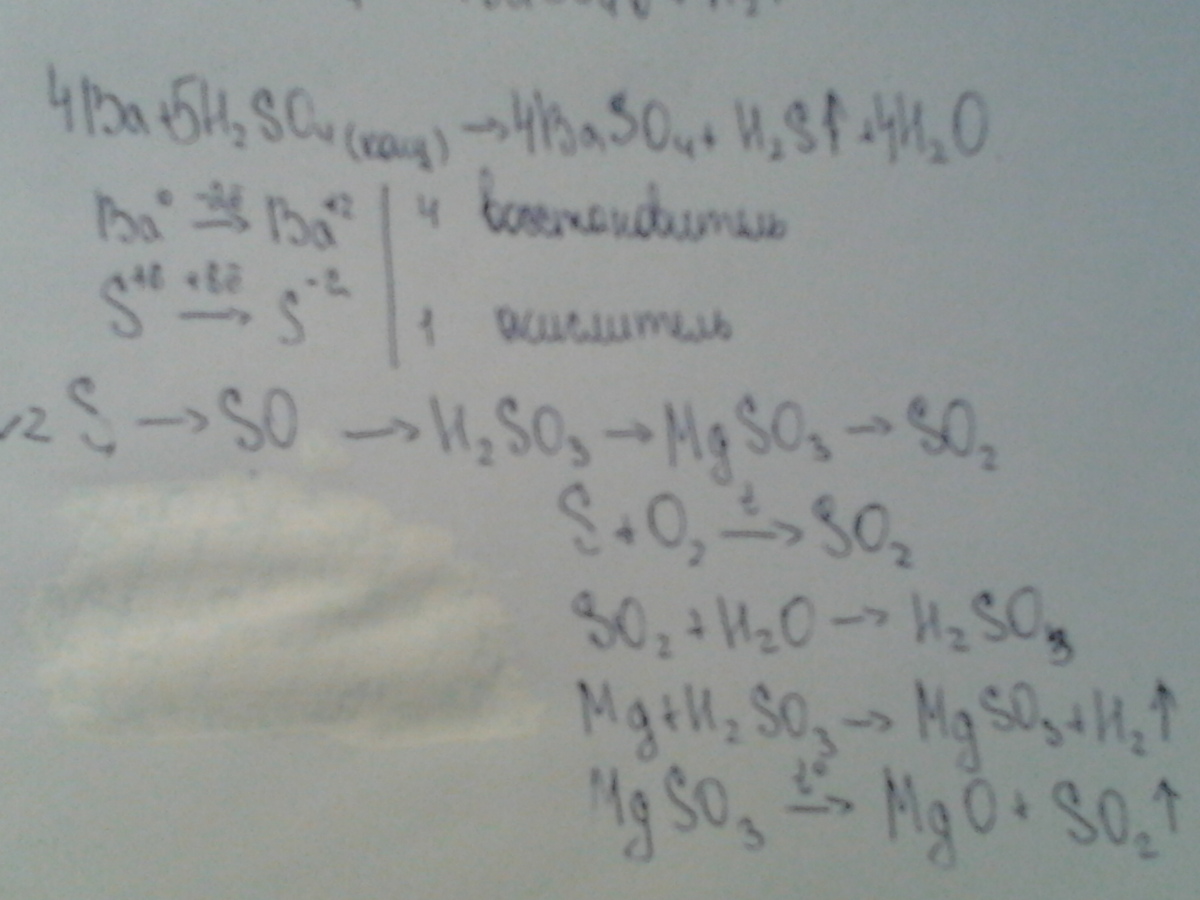 в 1 номере ,там барий,наверно,с концентрированной серной кислотой реагирует, т.к. если просто с серной кислотой ,то коэфициенты не нужны, я тебе решила с концентрированной,а не с концентрированной будет так:Ba+h2so4----Baso4+2h