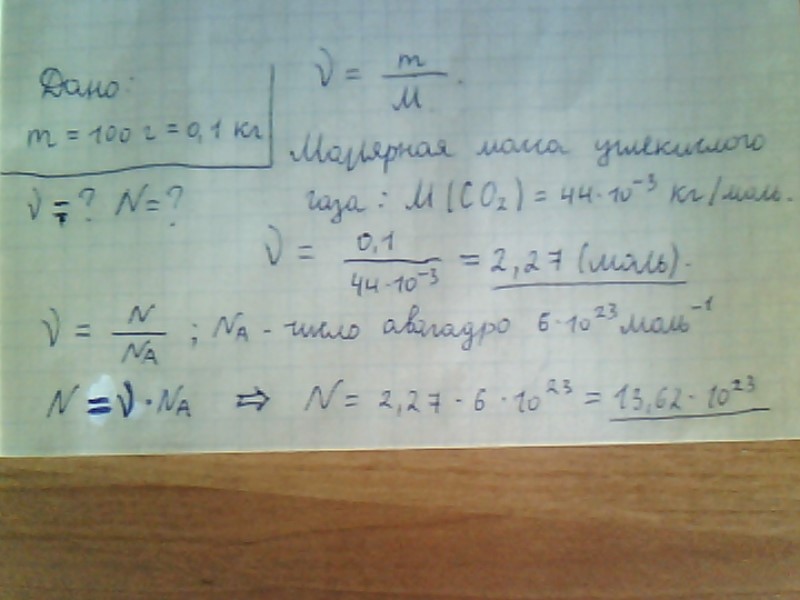 Ответ: Число малекул N = 13,62*10²³, Количества вещества равно 2,27 моль.