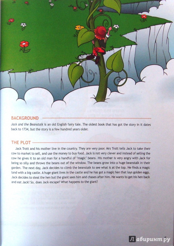 Джейк и Банстонг старые английские сказки. Они очень бедные. мистер Трот высокий дал Джеку корову на рынок на продажу и использование денег на еду. Джек был не очень умным и отдал место продажи коровы старому мужчине на обмен волшебным фасолими.