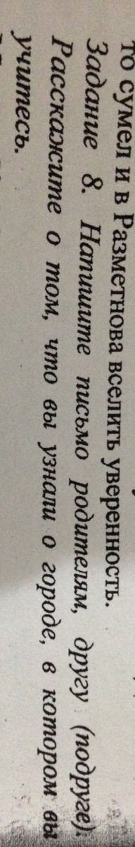 Дорогие мои мама и папа . Хочу рассказать про свой город в котором я учусь . я учусь в _ классе в школе № _ города _ . Мой город очень красивый . Мне нравиться здесь учиться . В моём городе много парков и скверов . После уроков я люблю прогуляться по улицам своего города . Мой город прекрасен красивыми статуями .Вот что я могу рассказать о своём городе .