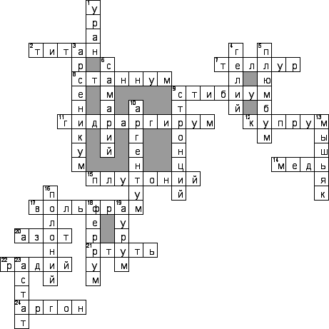Прошу помогите сделать кроссворд с ответами на тему химические элементы буквально 10 вопросов и все!)))прошууу. Заранее спасибо)
