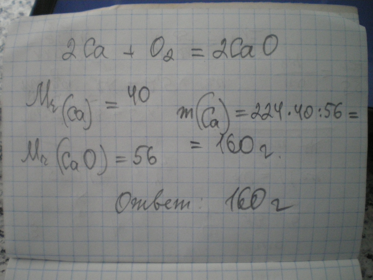 Какая масса кальцию необходима для получения 224г оксида кальция ?