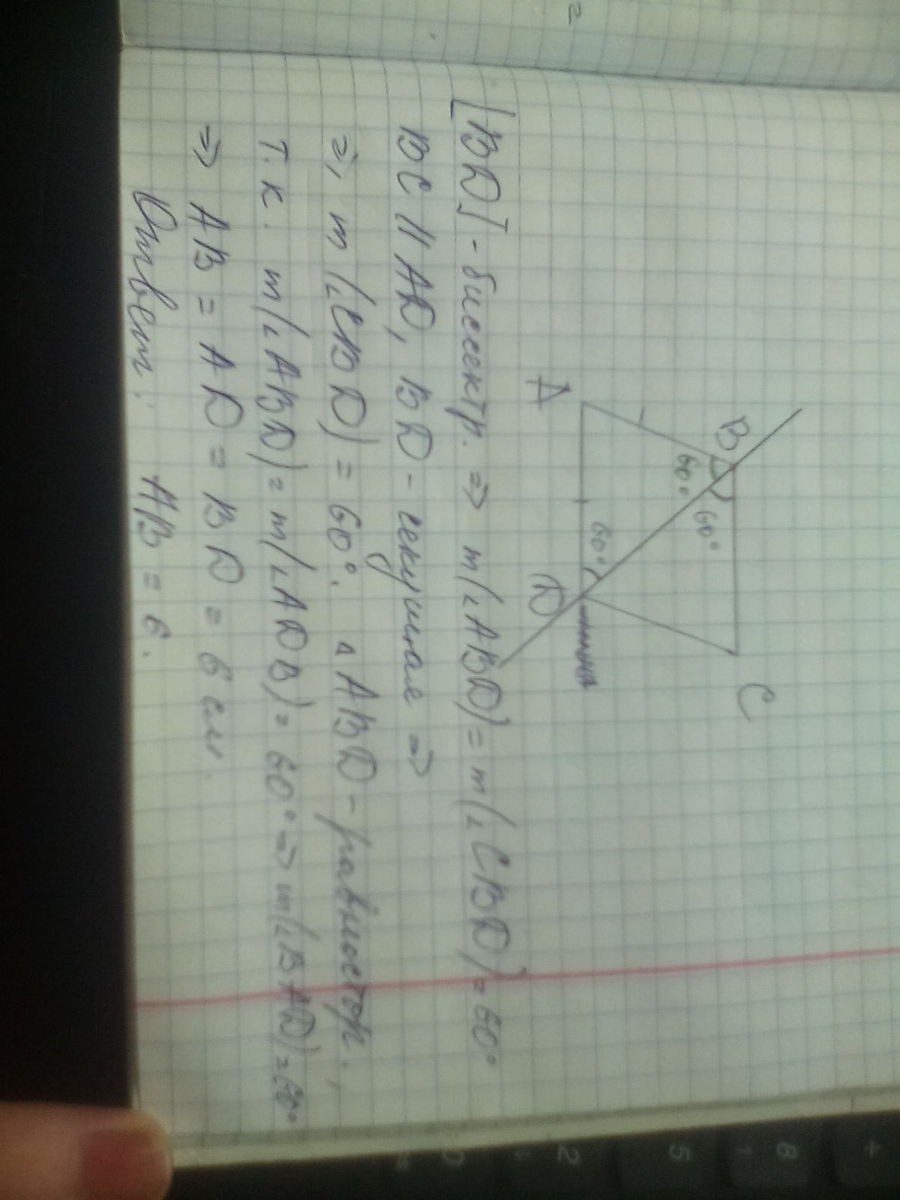 В параллелограмме ABCD биссектриса угла B проходит через вершину D. Найдите длину стороны AB, если BD=6, угол ABD=60 градусов