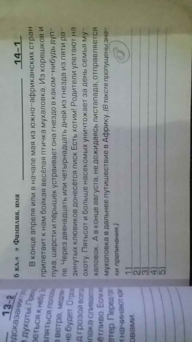 В конце апреля или в начале мая из южно-африканских стран прилетает к нам бойкая, веселая птичка-мухаловка. Из корешков и пуха, шерсти и перышек устраивает она гнездо в каком-нибудь дупле. Через 12 или 14 дней из гнезда, из пяти разинутый клювиков донесётся писк: "Есть хотим!" Родители улетают на охоту. Пятьсот и больше насекомых уничтожает за день семья мухоловок. А в конце августа, не дожидаясь листопада, отправляется мухоловка в дальнее путешествие в Африку.