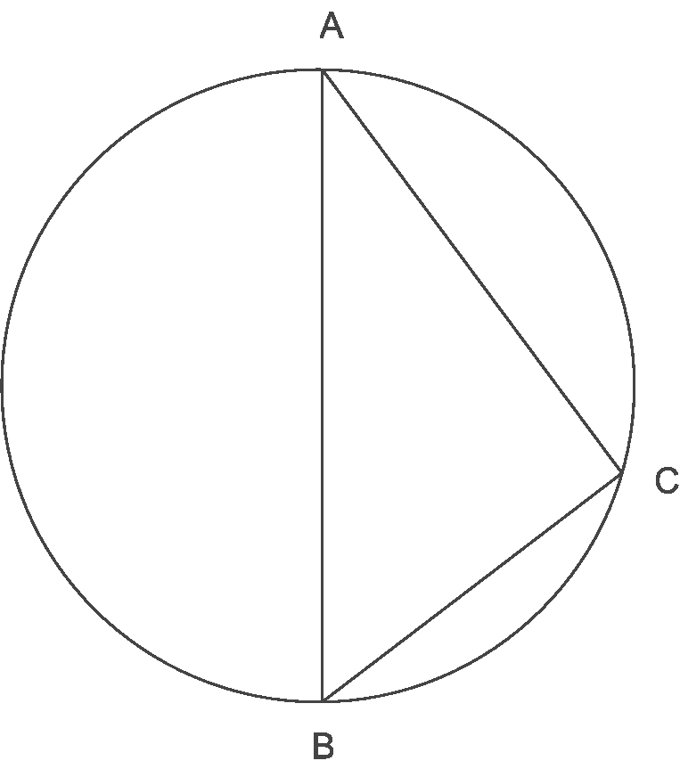По заданию, проводится окружность, через центр проводится диаметр. Потом на окружности выбирается любая точка и из точек А и В проводятся к ней линии.