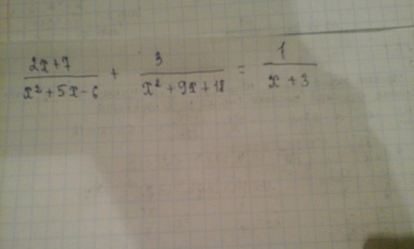 2х+7 / (x-1)*(x+6) + 3 / (x+3)*(x+6) = 1 / x+3