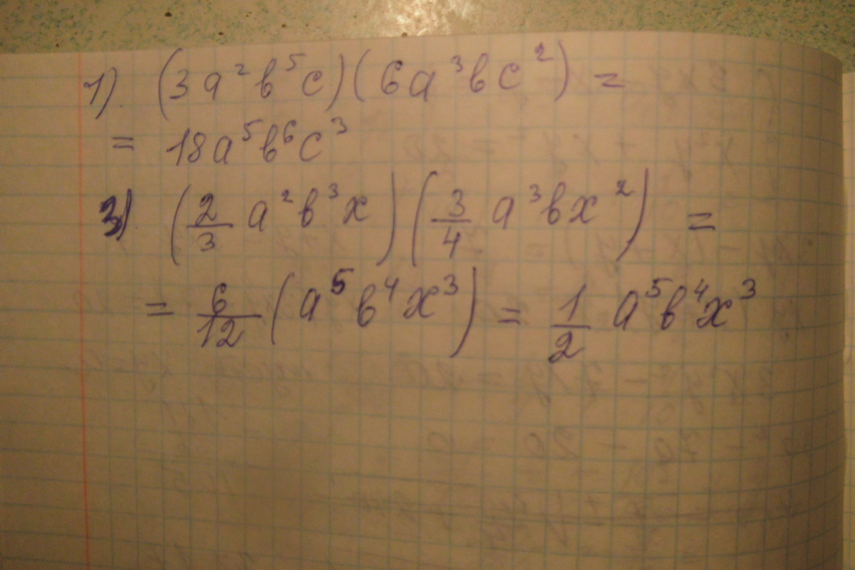 2) (3a^2b^5c)(6a^3bc^2) = 18a^5b^6c^3