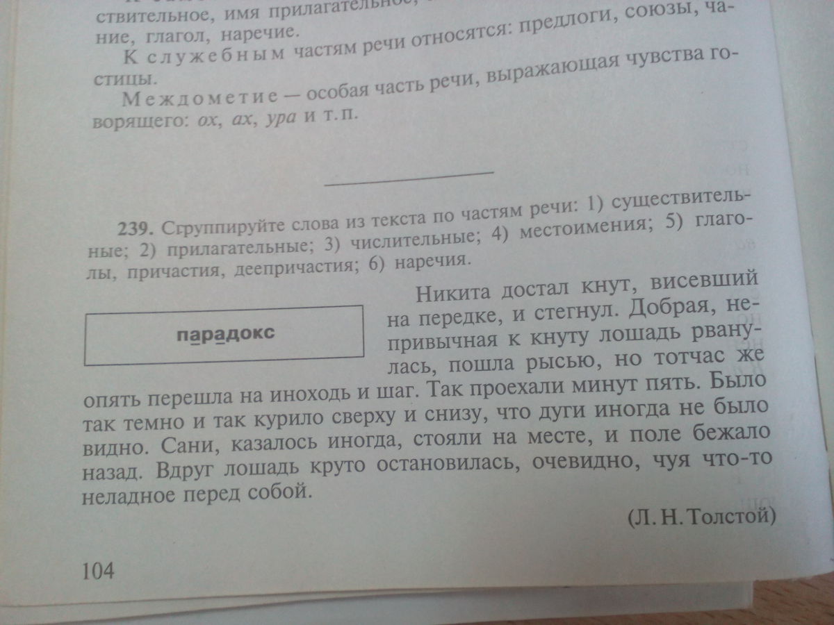 6) наречия: рысью, тотчас, опять, так, так, так, сверху, снизу, иногда, назад, вдруг, круто.